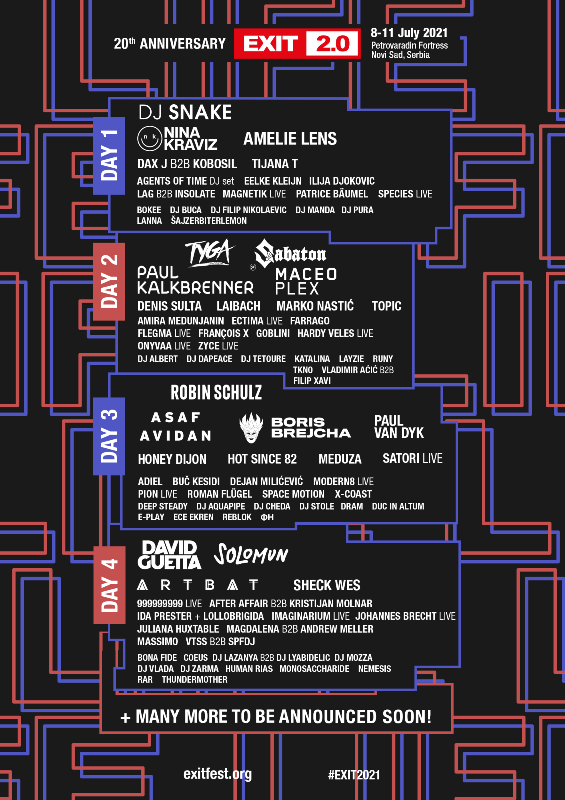 El festival serbio presenta un cartel muy suculento, con nombres como Amelie Lens, David Guetta, Meduza, Paul Kalkbrenner, Boris Brejcha, Dj Snake, Nina Kraviz, Maceo Plex, Solomun, Art Bat, Paul Van Dyk o Robin Schulz entre muchos otros.
