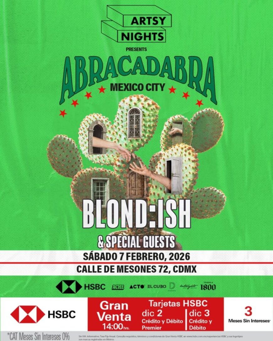 Durante Art Week ZⓈONAMACO, BLOND:ISH y artistas invitados tomarán Calle de Mesones 72 en un evento presentado por ARTSY NIGHTS. Una propuesta que une arte y house para una escapada creativa en el corazón de la capital. Habrá preventa especial para clientes HSBC.