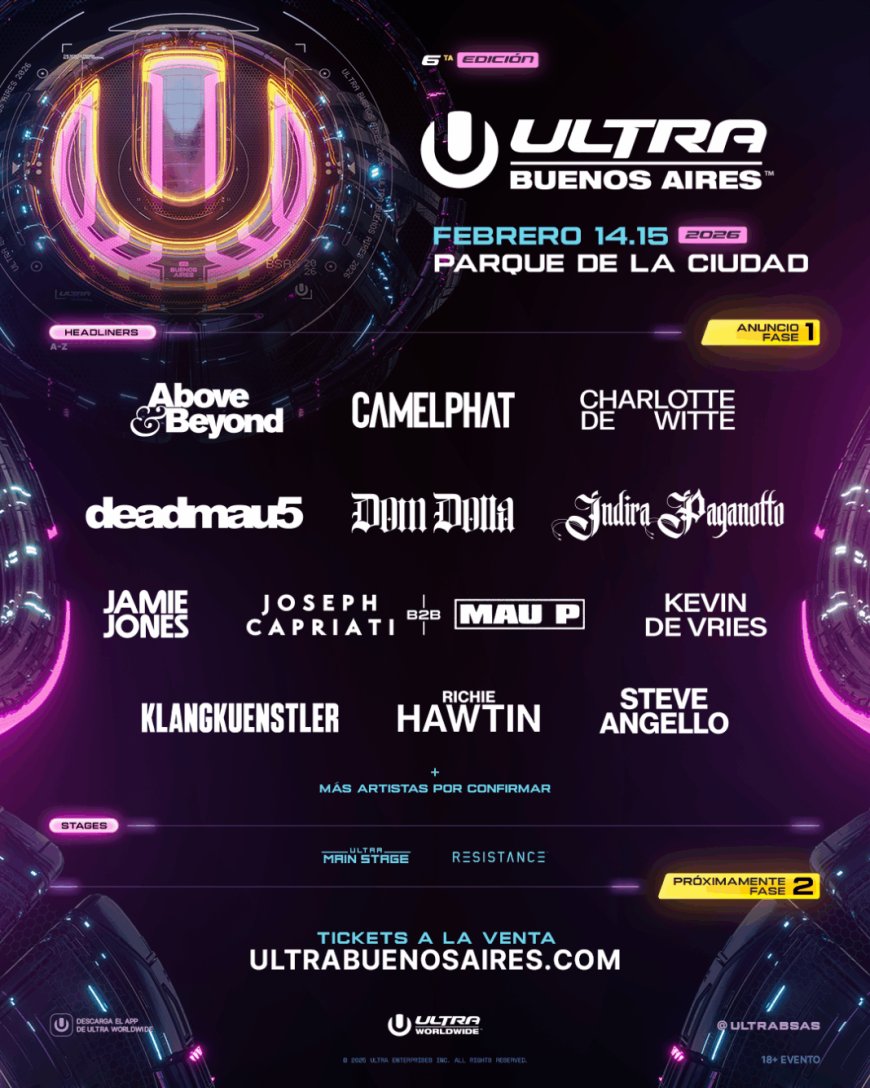 Sudamérica está de fiesta una vez más. ULTRA Buenos Aires regresa en 2026 con una espectacular alineación inicial para su sexta edición, prometiendo ser uno de los eventos más grandes de la región hasta la fecha. El festival se llevará a cabo el sábado 14 y domingo 15 de febrero de 2026 en el emblemático Parque de la Ciudad, en Argentina.