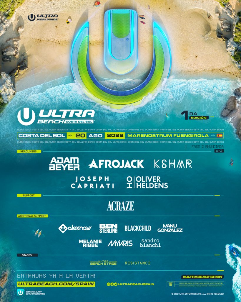El sábado 20 de agosto ULTRA BEACH Costa del Sol hará historia con su primera edición, a la que seguirán muchas, de la marca en España.